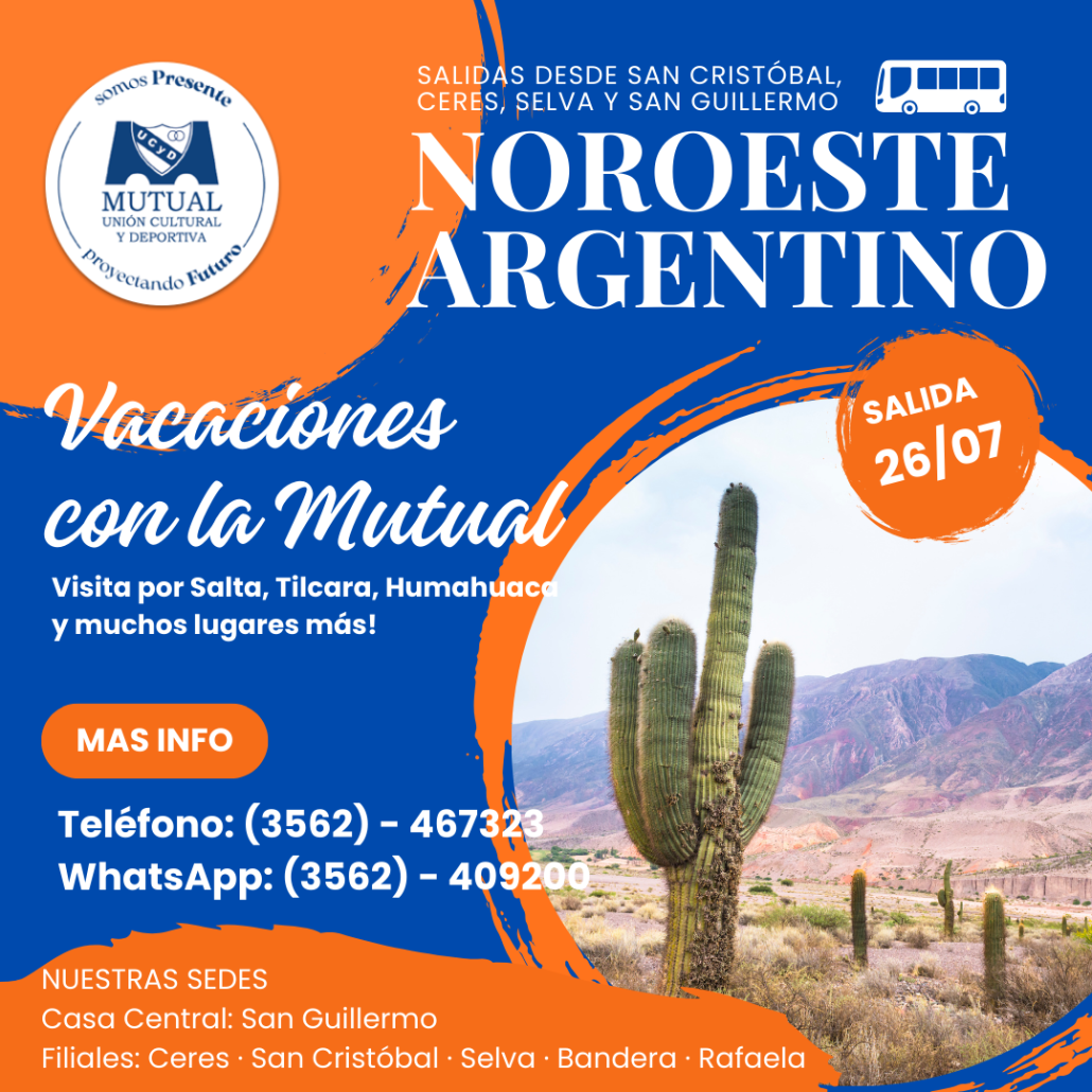 #ViajaconlaMutual. Visitá el NOROESTE ARGENTINO! #Vacacionesdejulio #TurismoMutual #NorteArgentino Planéa tus #Próximasvacaciones. Paseá con la Mutual UCyD.