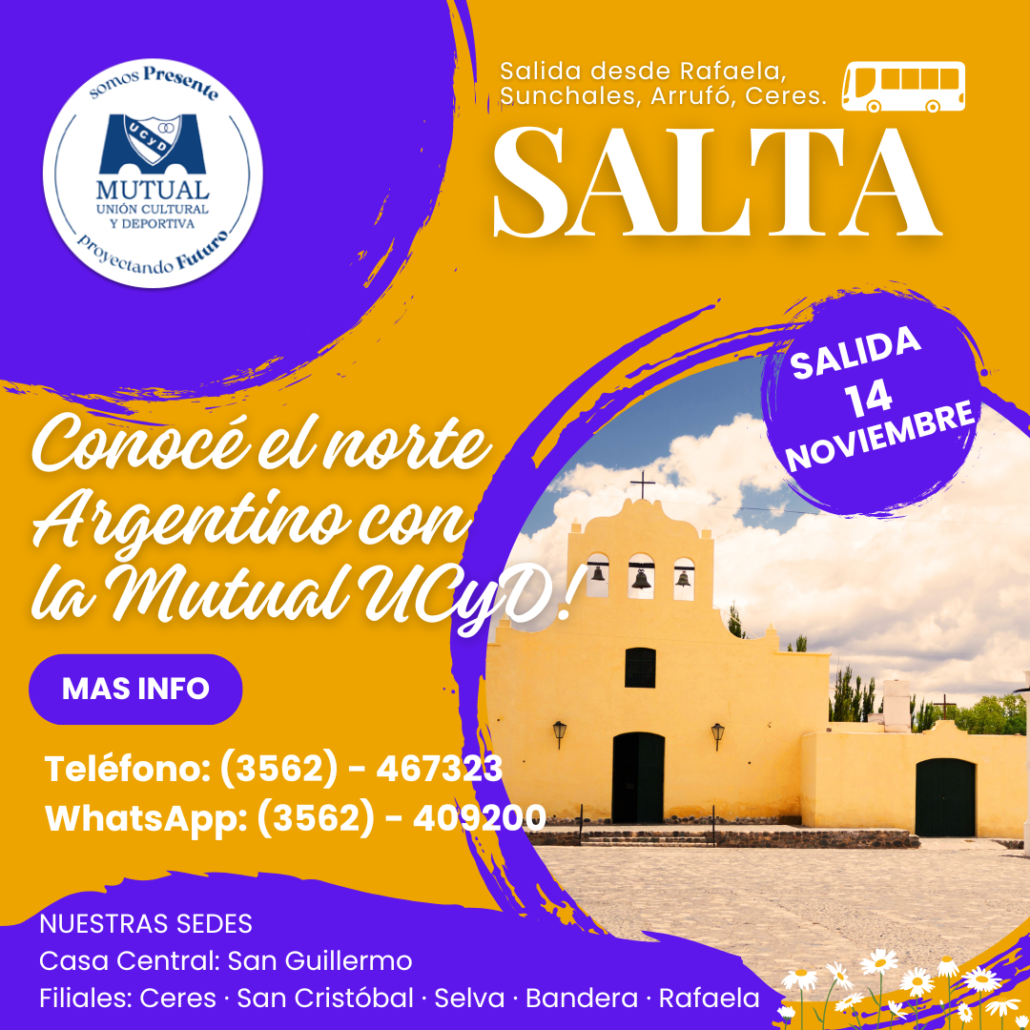 #ViajaconlaMutual. Visitá SALTA! #TurismoMutual #NorteArgentino Planéa tus #Próximasvacaciones. Paseá con la Mutual UCyD.