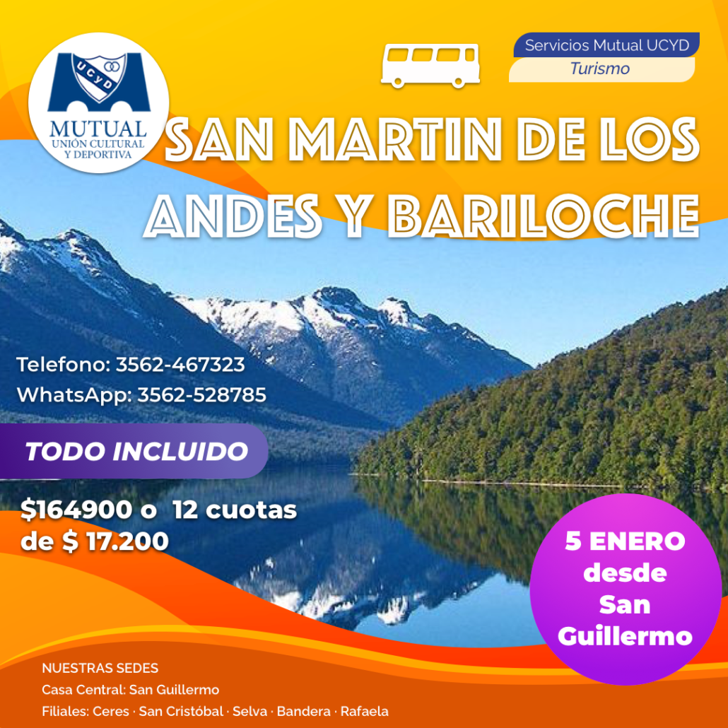 #ViajaconlaMutual. Visitá SAN MARTIN DE LOS ANDES Y BARILOCHE el SUR ARGENTINO! #TurismoMutual Planéa tus #Próximasvacaciones. Paseá con la Mutual UCyD.