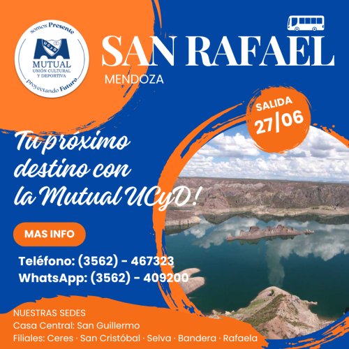 #ViajaconlaMutual. Visitá SAN RAFAEL #TurismoMutual Planéa tus #Próximasvacaciones. Paseá con la Mutual UCyD.