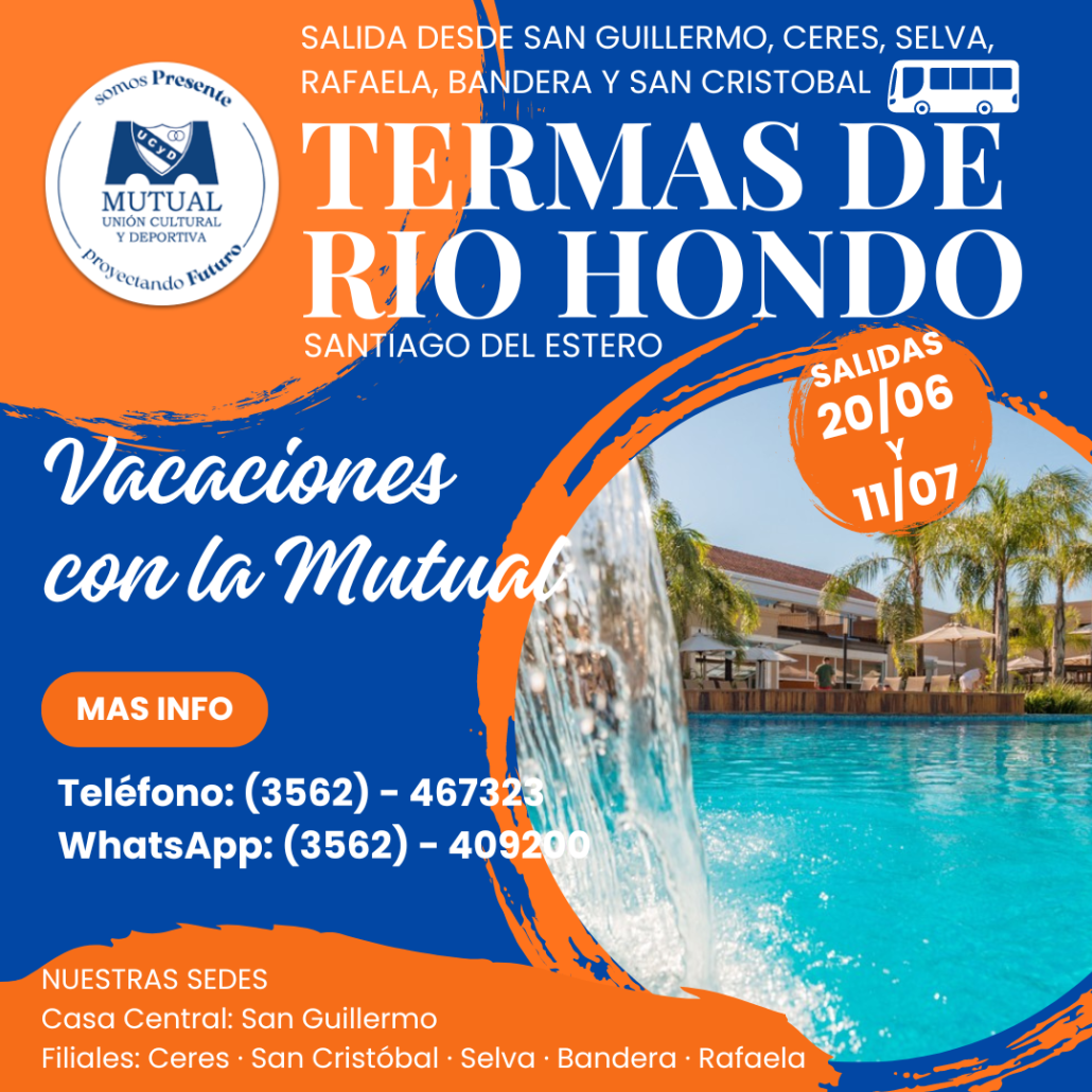#ViajaconlaMutual. Visitá Termas de Río Hondo! #Vacacionesdejulio #TurismoMutual #NorteArgentino Planéa tus #Próximasvacaciones. Paseá con la Mutual UCyD.
