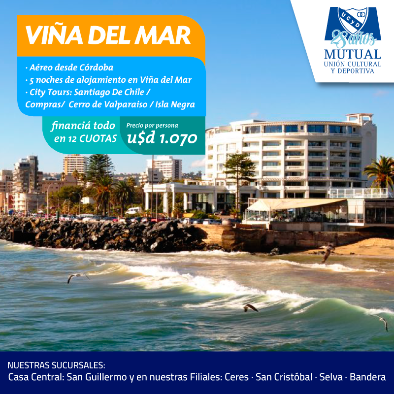 #ViajaconlaMutual. Vacaciones de Invierno en Viña del Mar viajando en Avión! #TurismoMutual #Próximasvacaciones. Paseá con la Mutual UCyD.